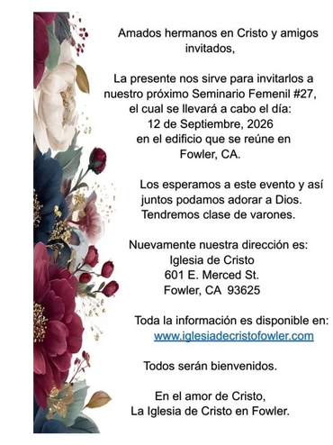 Iglesia de Cristo Fowler - (559) 351-5355 601 E Merced St, Fowler, CA 93625